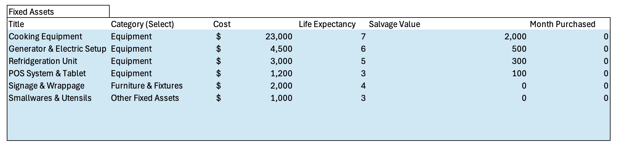 This becomes your starting cash balance, the runway you have before your food truck begins making enough cash from daily operations to cover expenses.