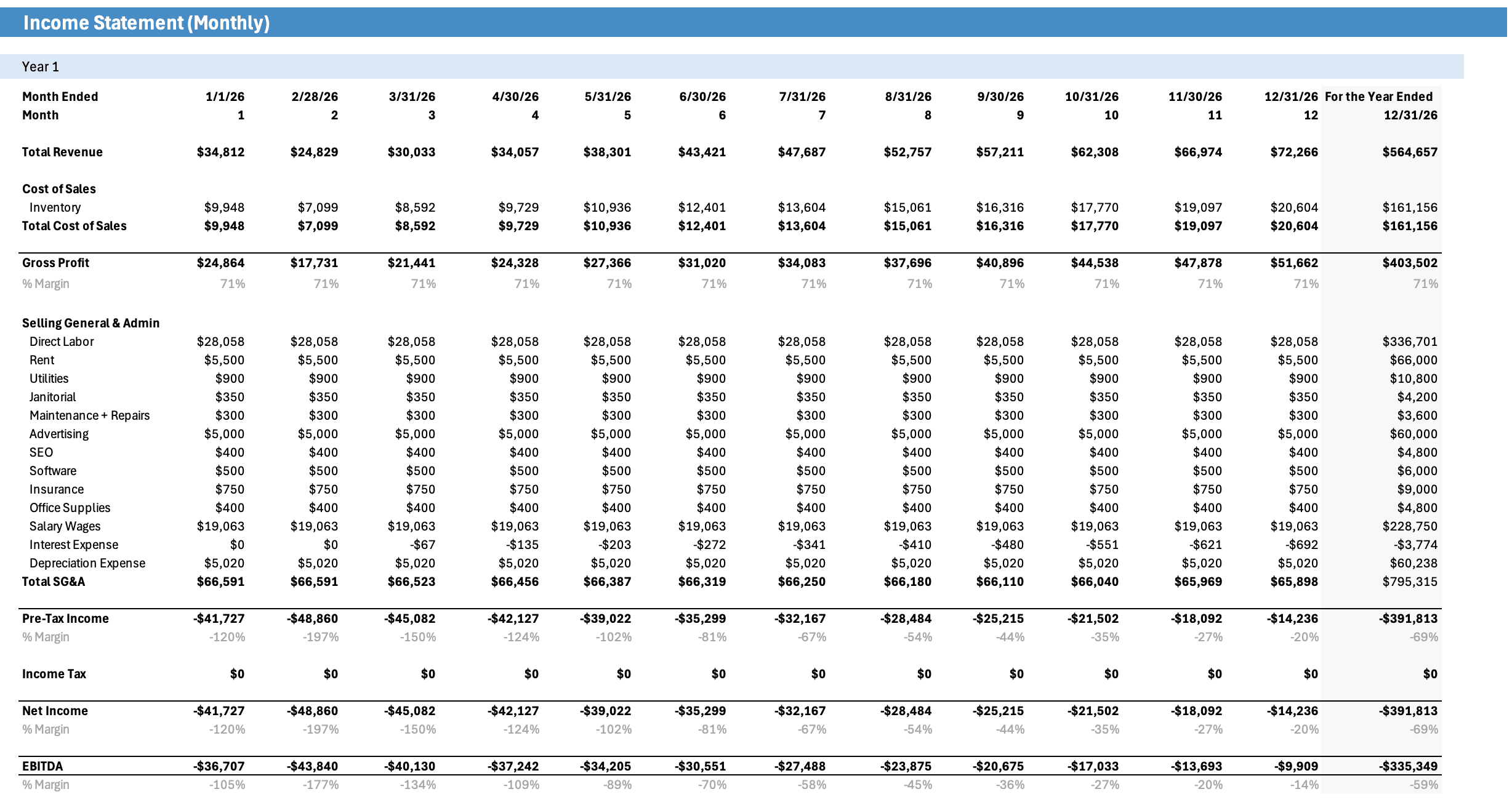 The structure here depends on whether the practice is an LLC, S-Corp, or sole proprietorship. Even if you’re early-stage, it’s important to include reasonable owner pay to avoid overstating profitability.