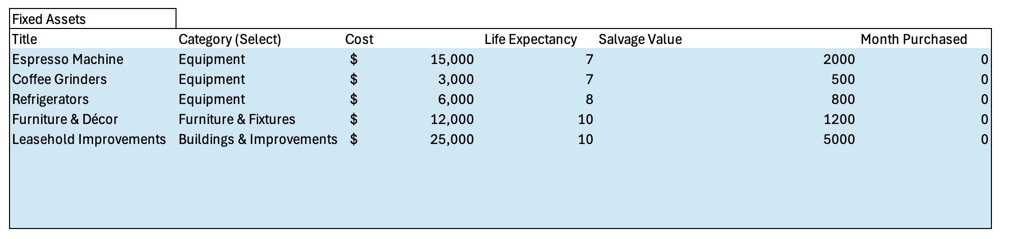 Coffee Shop Financial Projection Template Excel