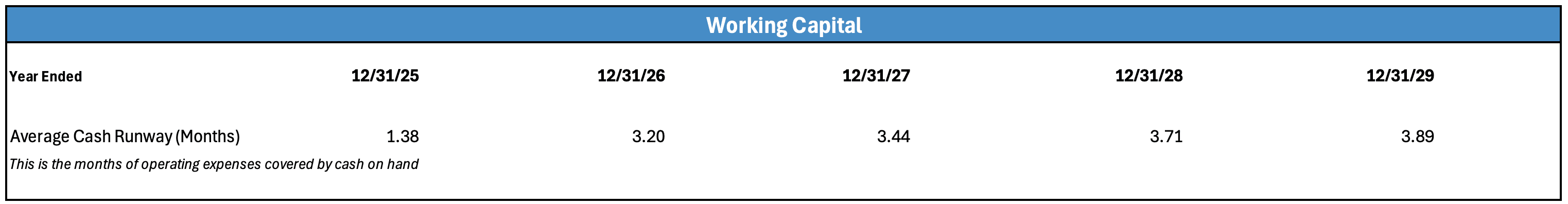 A good rule of thumb is to have 3–6 months of operating expenses in cash, depending on how aggressive your growth assumptions are.