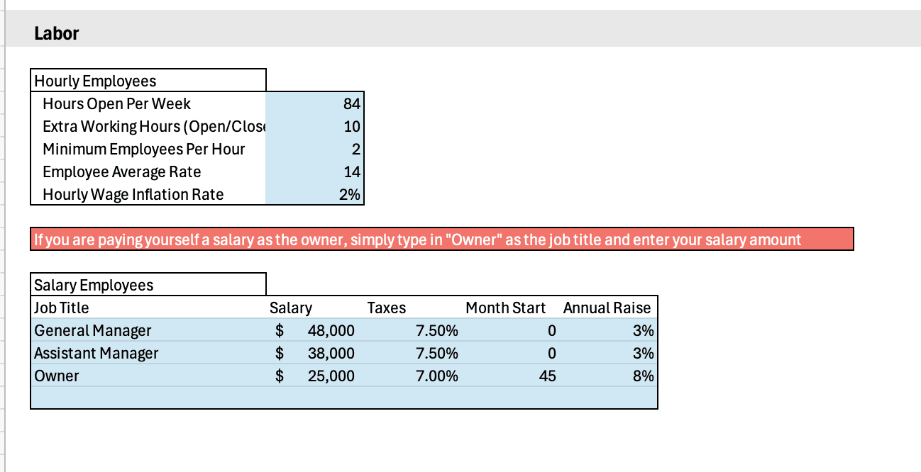 Payroll is usually the largest cash expense for a coffee shop. Your projection should include: